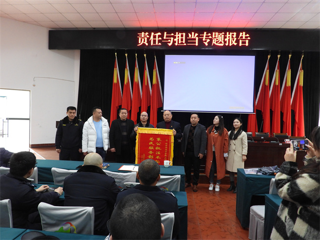 為全面提高執(zhí)法人員的綜合素質(zhì),全面加強(qiáng)執(zhí)法隊(duì)伍建設(shè),龍泉驛區(qū)柏合街道黨工委、街道辦堅(jiān)持了每月不少于一次黨的政治思想引領(lǐng)、綜合執(zhí)法水平及人員的行為素質(zhì)的提升的主題教育。2023年2月7日,由柏合街道辦組織全體執(zhí)法人員,在柏合街道會(huì)議室開展了以“責(zé)任與擔(dān)當(dāng)”為題的主題教育。會(huì)議由柏合街道車副主任主持。這次的主題教育,柏合街道特邀了四川久德地久建設(shè)工程有限責(zé)任公司黨支部書記、董事長吳貢學(xué)同志作了題為《責(zé)任與擔(dān)當(dāng)》的主題報(bào)告。街道綜合執(zhí)法協(xié)調(diào)辦領(lǐng)導(dǎo)以及執(zhí)法人員130余名認(rèn)真聆聽了報(bào)告。