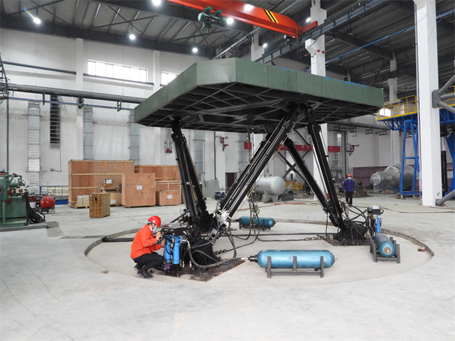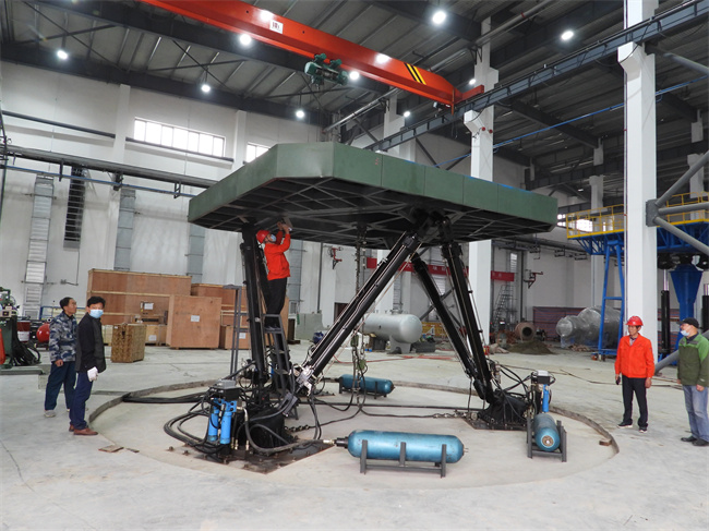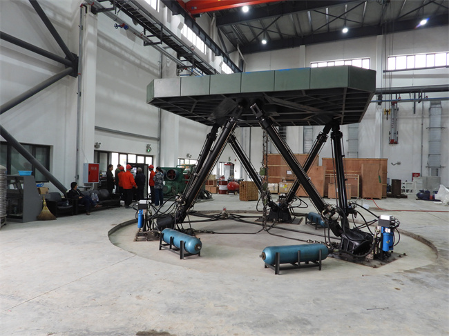 六自由度試驗(yàn)平臺(tái)傾斜角度達(dá)40度,屬世界首創(chuàng)。科技含量特別高。安全要求特別嚴(yán)。四川久德公司組織鉗工工匠、電氣工匠、數(shù)控工程師等組成了強(qiáng)大的技術(shù)骨干隊(duì)伍,經(jīng)過近一個(gè)月的攻關(guān),全套設(shè)備安裝調(diào)試完成。